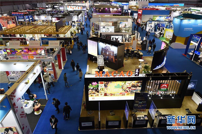參觀者在上海舉行的首屆中國(guó)國(guó)際進(jìn)口博覽會(huì)服務(wù)貿(mào)易展區(qū)參觀(2018年11月10日攝)。新華社記者 韓瑜慶 攝