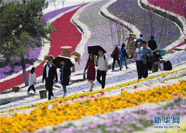 游客在北京世園會(huì)天田山游玩(5月1日攝)。新華社記者 張晨霖 攝