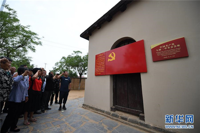 在河北西柏坡中國(guó)共產(chǎn)黨七屆二中全會(huì)會(huì)址,黨員重溫入黨誓詞(6月20日攝)。新華社記者 朱旭東 攝