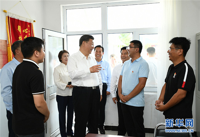 7月15日至16日,中共中央總書記、國(guó)家主席、中央軍委主席習(xí)近平在內(nèi)蒙古考察并指導(dǎo)開展“不忘初心、牢記使命”主題教育。這是15日下午,習(xí)近平在赤峰市喀喇沁旗河南街道馬鞍山村黨群服務(wù)中心了解基層黨建、民族團(tuán)結(jié)和鄉(xiāng)村振興情況。 新華社記者 謝環(huán)馳 攝