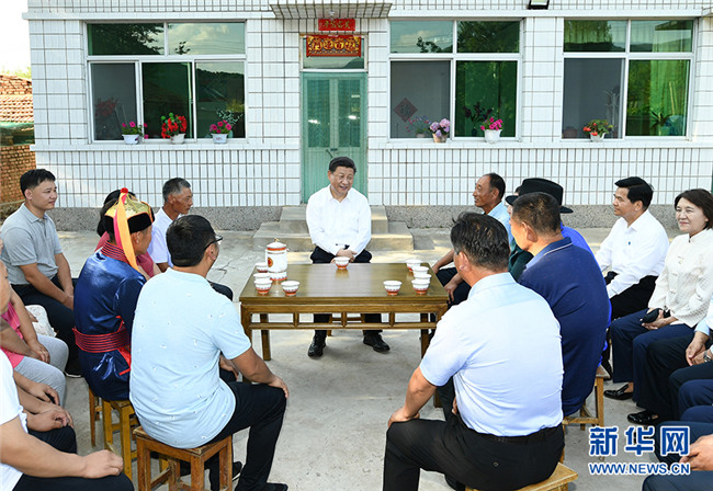 7月15日至16日,中共中央總書記、國(guó)家主席、中央軍委主席習(xí)近平在內(nèi)蒙古考察并指導(dǎo)開展“不忘初心、牢記使命”主題教育。這是15日下午,習(xí)近平在赤峰市喀喇沁旗河南街道馬鞍山村村民張國(guó)利家,同基層干部群眾代表親切交流。 新華社記者 謝環(huán)馳 攝