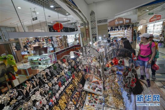 游客在新疆國際大巴扎景區(qū)購買手工藝品(7月13日攝)。