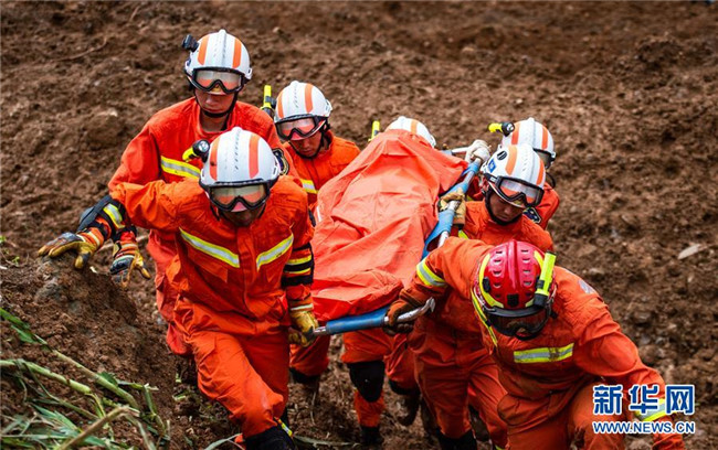 7月24日,救援人員從山體滑坡現(xiàn)場運出遇難者遺體。新華社記者 陶亮 攝