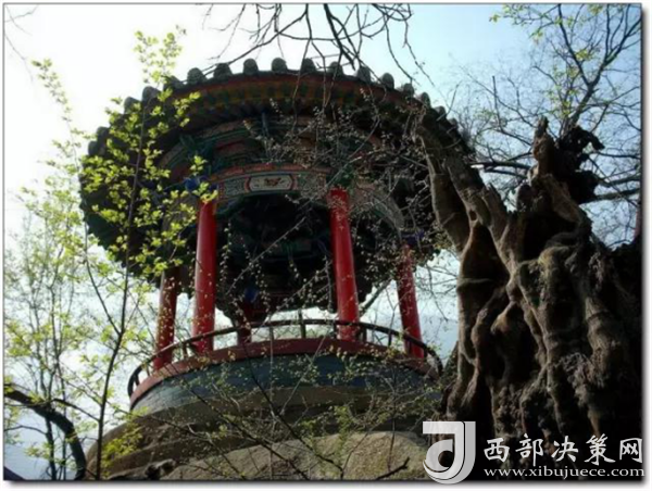 山蓀亭旁有一古樹,龍蟠虬結(jié),郁郁蔥蔥,傳說為陳摶手植。因無人修剪,愿怎么長就怎么長,無憂無慮,顧名無憂。所以長成今天如此形狀。雖已有千余年,但仍顯得樸茂挺健,生機盎然。