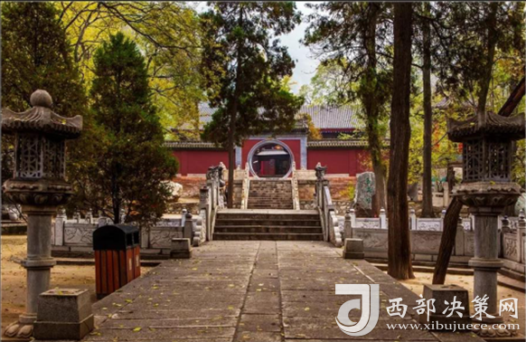 整個玉泉院亭臺樓閣,青磚藍(lán)瓦,古樸無華,傍山伊水,山氣騰霏,巒峰透欄,林立竹搖,亭臺樓廊,委婉曲折,環(huán)境優(yōu)美,使人心儀。面對這樣的環(huán)境,使人還沒登山便感受到一種天道合一的莊重,一份靜閑淡薄的飄渺,一個心生敬畏的氛圍。