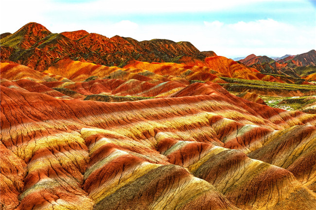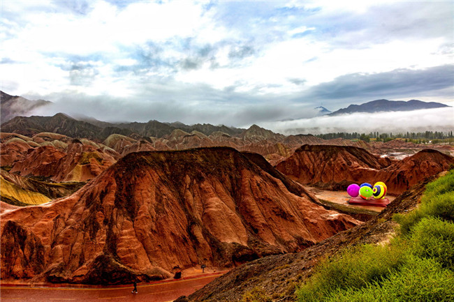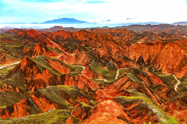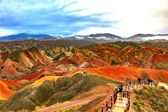 9月9日,甘肅張掖七彩丹霞旅游景區(qū)。一場(chǎng)小雨剛剛飄過,整個(gè)景區(qū)如同燃燒了萬年的火焰,更加艷麗、熱烈而磅礴。位于祁連山北麓臨澤、肅南縣境內(nèi),距張掖市區(qū)30公里、臨澤城區(qū)20公里,分布面積約50平方公里的七彩丹霞景區(qū),是中國(guó)北方干旱地區(qū)發(fā)育最典型的丹霞地貌及國(guó)內(nèi)唯一的丹霞地貌與彩色丘陵景觀復(fù)合區(qū)。先后被評(píng)為“中國(guó)最美的七大丹霞”“中國(guó)最美的六處奇異地貌”“世界十大神奇地理奇觀”和全球最刻骨銘心的22處風(fēng)景之一,現(xiàn)為國(guó)家地質(zhì)公園、國(guó)家4A級(jí)旅游景區(qū)和省級(jí)風(fēng)景名勝區(qū)。