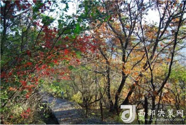 當(dāng)行走在長長石階的秋天午后,金色的陽光從依然茂密的樹冠隙間,篩露下萬道金光,映得滿山紅葉鮮紅光亮。站在山頂之上,秋風(fēng)徐來,峰迎秋霞,林嘯陣陣,置身其間,滿目是一派深秋的景象,不免飄飄欲仙……