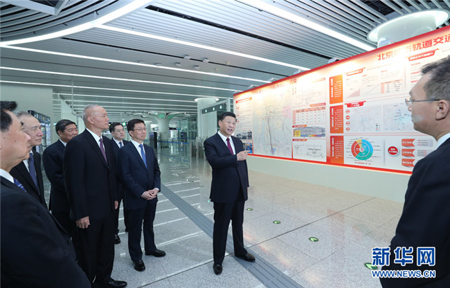 9時(shí)45分,習(xí)近平來(lái)到位于北京市豐臺(tái)區(qū)的軌道交通大興機(jī)場(chǎng)線草橋站,考察北京市軌道交通建設(shè)發(fā)展情況和大興機(jī)場(chǎng)線運(yùn)營(yíng)準(zhǔn)備情況。連接北京大興國(guó)際機(jī)場(chǎng)和中心城區(qū)的軌道交通專線,一期工程41公里已建成投運(yùn)。草橋站把地鐵站功能和機(jī)場(chǎng)值機(jī)功能結(jié)合起來(lái),讓乘客在地鐵站內(nèi)就能實(shí)現(xiàn)國(guó)內(nèi)國(guó)際值機(jī),辦理行李安檢和托運(yùn),實(shí)現(xiàn)了城市交通同機(jī)場(chǎng)交通的無(wú)縫銜接,極大便利了廣大乘客。