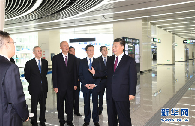 9月25日上午,北京大興國(guó)際機(jī)場(chǎng)投運(yùn)儀式在北京舉行。中共中央總書記、國(guó)家主席、中央軍委主席習(xí)近平出席儀式,宣布機(jī)場(chǎng)正式投運(yùn)并巡覽航站樓。這是習(xí)近平在綜合交通中心聽(tīng)取機(jī)場(chǎng)綜合交通體系建設(shè)情況介紹。 新華社記者 謝環(huán)馳 攝