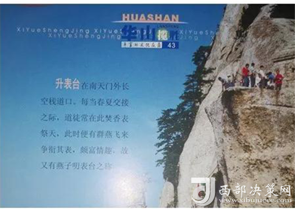仰天池、洞里甕、全真崖、升表臺,以上就是華山四大謎,帶大家游覽了一番,您覺得有更好的解釋嗎?如果有可以給我們留言,讓我們大家共同探索華山的未解之謎,用彩筆為華山之謎畫下最美的謎底吧!(供稿:華旅集團(tuán)營銷中心)