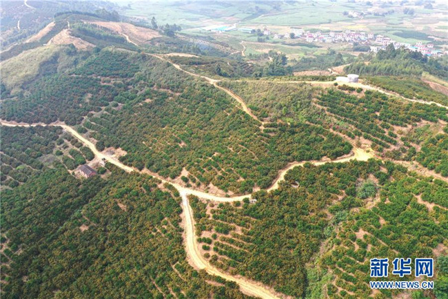 這是鹿寨縣平山鎮(zhèn)大陽(yáng)村的柑桔種植區(qū)(11月7日無(wú)人機(jī)拍攝)。