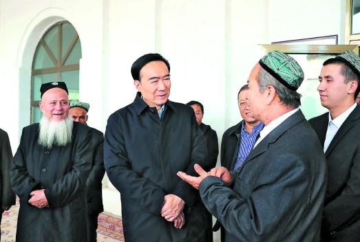 11月8日,自治區(qū)黨委書記陳全國在吐魯番市調研。 這是陳全國在高昌區(qū)紅星片區(qū)戈壁社區(qū)清真寺了解宗教活動開展情況。崔志堅攝