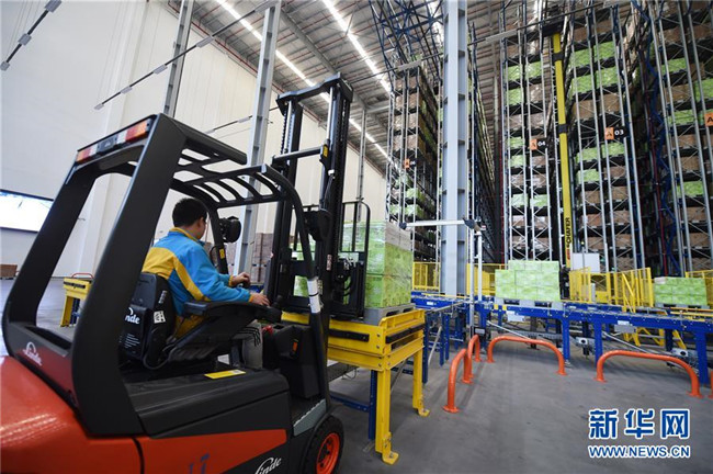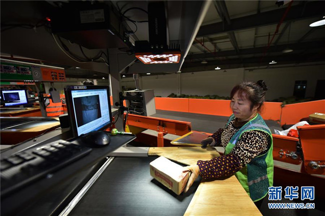 工作人員在南京市雨花經(jīng)濟(jì)開發(fā)區(qū)一家智慧物流基地內(nèi)忙碌(2016年11月3日攝)。該物流基地建筑面積達(dá)20多萬(wàn)平方米,可存儲(chǔ)商品2000萬(wàn)件,日處理包裹181萬(wàn)件。整個(gè)物流基地實(shí)現(xiàn)全流程自動(dòng)作業(yè),從訂單生成到商品出庫(kù),最快可縮短到30分鐘。新華社發(fā)