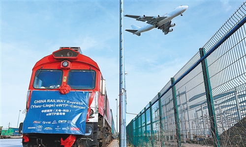 10月25日,中歐班列(義烏—列日)“世界電子貿(mào)易平臺(tái)(eWTP)菜鳥號(hào)”首趟列車抵達(dá)比利時(shí)列日物流多式聯(lián)運(yùn)貨運(yùn)場站。這是首個(gè)貫通中國長三角區(qū)域、中亞和歐洲并服務(wù)于跨境電子商務(wù)的專列。 新華社記者 潘革平攝