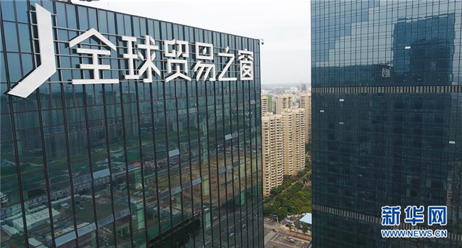 12月5日無人機(jī)拍攝的位于海口市大英山CBD的??谌蛸Q(mào)易之窗大廈。 新華社記者 楊冠宇 攝