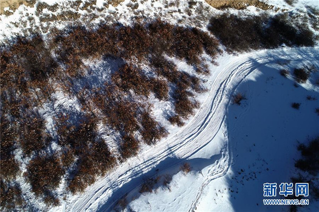 這是12月18日拍攝的清水河縣野生沙棘保護地一角(無人機拍攝)。 新華社記者 徐欽 攝