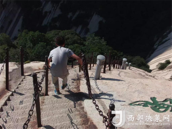 千百年前,陡峭如削的華山,艱險異常,難以登攀,只能望山興嘆、遠(yuǎn)而望之。后來人們循猿徑,依山就勢,巧妙地利用天設(shè)地造的石隙嶺脊,開鑿出了登山道路,始有天下奇觀“自古華山一條路”。