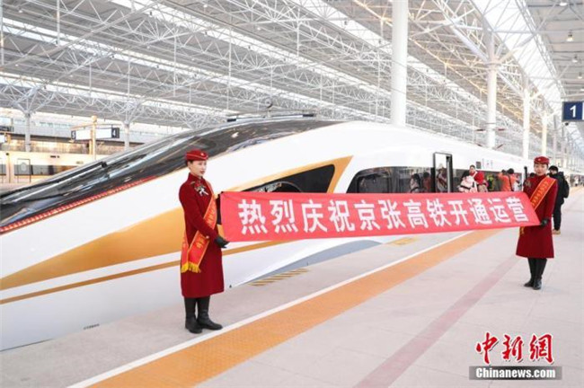 資料圖:2019年12月30日,北京至張家口高速鐵路(簡稱京張高鐵)開通運營。中新社記者 蔣啟明 攝