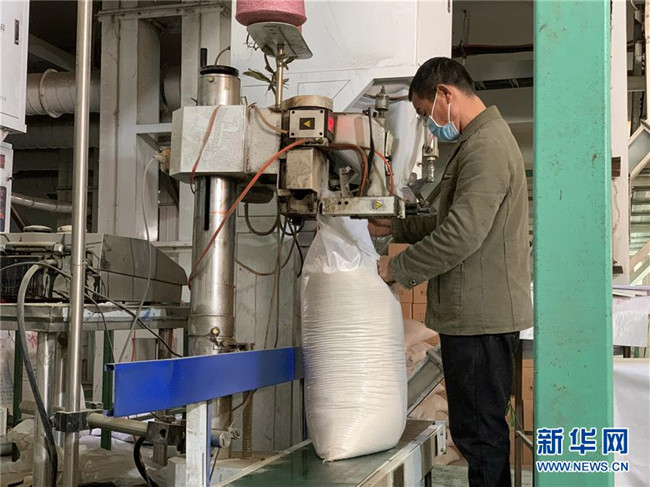 2月7日,在位于洞庭湖畔的湖南南縣,一家米業(yè)公司已經(jīng)復(fù)工。 新華社發(fā)