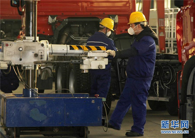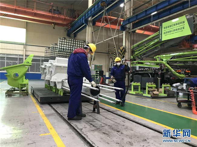 2月5日,中聯(lián)重科消防機(jī)械公司員工在廠房內(nèi)進(jìn)行裝配。 新華社發(fā)