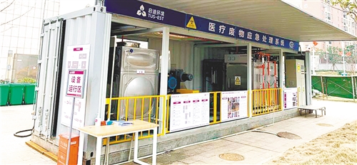 啟迪環(huán)境科技醫(yī)廢應(yīng)急團隊在武漢搭建的醫(yī)療廢物應(yīng)急處理系統(tǒng)。(資料圖片)