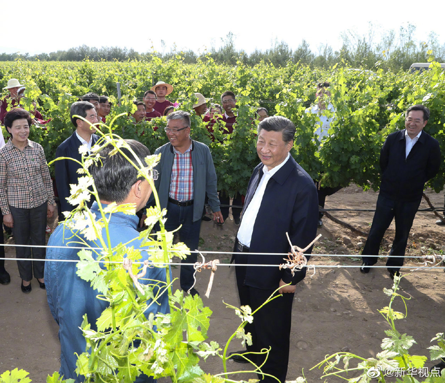 習(xí)近平總書(shū)記9日在銀川考察調(diào)研。他先后來(lái)到賀蘭縣稻漁空間鄉(xiāng)村生態(tài)觀光園、賀蘭山東麓葡萄種植園,了解當(dāng)?shù)匕l(fā)展特色農(nóng)業(yè)產(chǎn)業(yè)、加強(qiáng)賀蘭山生態(tài)保護(hù)等情況。(文字記者:張曉松、朱基釵 攝影記者:鞠鵬、謝環(huán)馳、王曄、燕雁)