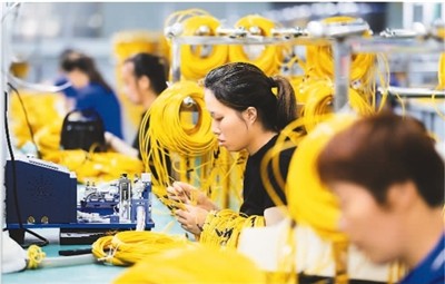 今年以來,安徽省淮北市加快培育戰(zhàn)新產(chǎn)業(yè)鏈,提升戰(zhàn)新產(chǎn)業(yè)整體競爭力,使戰(zhàn)新產(chǎn)業(yè)成為經(jīng)濟增長新引擎。圖為淮北市濉溪經(jīng)濟開發(fā)區(qū)內(nèi)的一家光通信技術企業(yè)的工人在生產(chǎn)車間加工光通信產(chǎn)品。萬善朝攝(人民視覺)