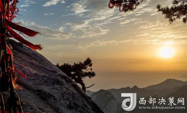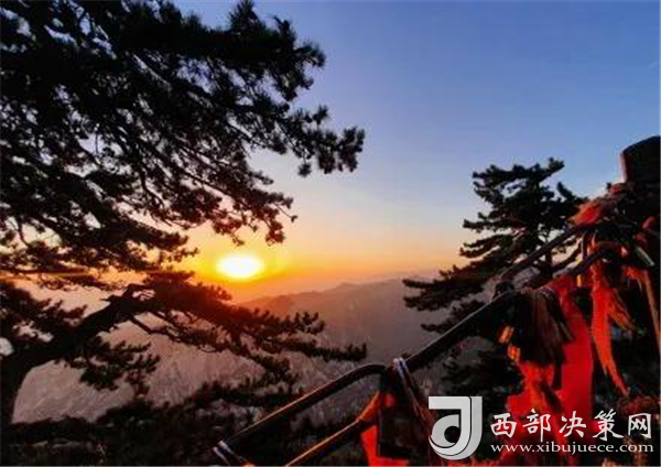 是時(shí),但見夜幕自東方悄然隱退,晨曦初露,漸漸霞光瑰麗,云源奔涌。瞬間,一輪火球噴薄而出,繼而光芒四射,氣象萬千,整個(gè)世界大放光明,游人身心為之一振。待云霧散盡,蒼松翠柏,則更加清麗悅目,美妙神奇。故而,游名山者必登華山,登華山者必觀日。華山日出亦被列為華山自然風(fēng)光中的重要景觀之一。