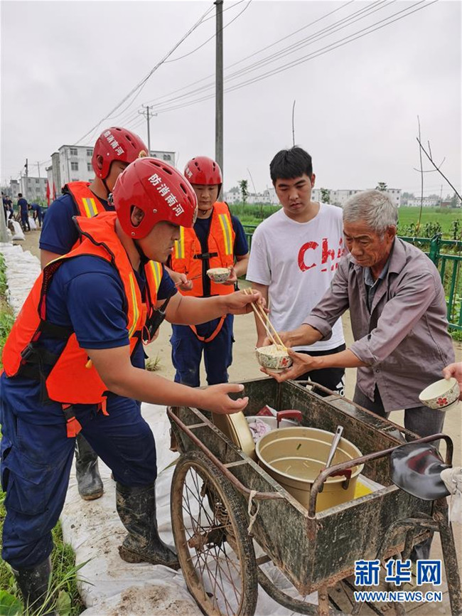 安徽銅陵市,群眾自發(fā)為正在加固堤壩的武警官兵送去煮好的雞蛋;