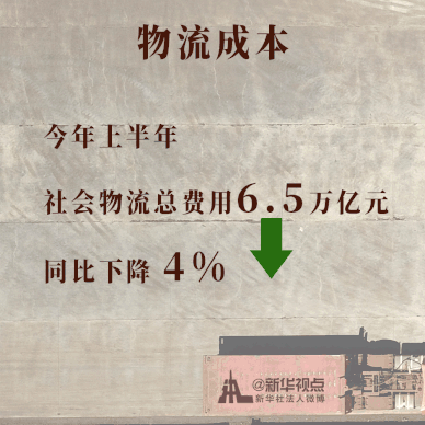 中國物流與采購聯(lián)合會統(tǒng)計數(shù)據(jù)顯示,今年上半年,社會物流總費用6.5萬億元,同比下降4%。