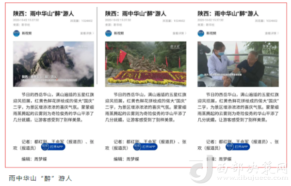 節(jié)前與央視頻手機(jī)客戶端及陜視新聞手機(jī)客戶端提前對(duì)接并測(cè)試信號(hào),確保黃金周期間全天24小時(shí)不間斷慢直播順利進(jìn)行,同時(shí)與央視、新華社、人民網(wǎng)、陜西日?qǐng)?bào)、陜西電視臺(tái)、渭南日?qǐng)?bào)、渭南電視臺(tái)及省內(nèi)主流網(wǎng)絡(luò)媒體聯(lián)系對(duì)接,確保黃金周期間各項(xiàng)工作有序推進(jìn)。