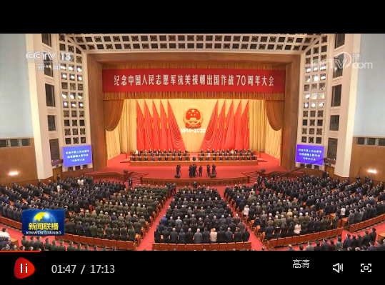 習(xí)近平:“我代表黨中央、國務(wù)院和中央軍委,向所有健在的中國人民志愿軍老戰(zhàn)士、老同志、傷殘榮譽軍人,向當(dāng)年支援抗美援朝戰(zhàn)爭的全國各族人民特別是參戰(zhàn)支前人員,向中國人民志愿軍烈屬、軍屬致以最誠摯的問候。”