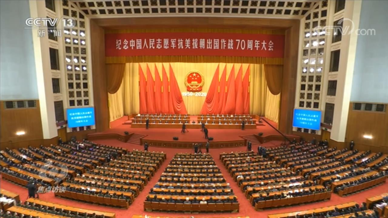 央視網消息(焦點訪談):70年前,面對武裝到牙齒的強敵,由中華民族優(yōu)秀兒女組成的中國人民志愿軍,雄赳赳、氣昂昂,跨過鴨綠江,開始了兩年零9個月艱苦卓絕的浴血奮戰(zhàn)。70年來,我們始終沒有忘記老一輩革命家為維護國際正義、捍衛(wèi)世界和平、保衛(wèi)新生共和國所建立的不朽功勛,始終沒有忘記譜寫了氣壯山河英雄贊歌的中國人民志愿軍將士以及所有為這場戰(zhàn)爭勝利作出貢獻的人們,始終沒有忘記在戰(zhàn)爭中英勇犧牲的烈士們。23日上午,紀念中國人民志愿軍抗美援朝出國作戰(zhàn)70周年大會在人民大會堂隆重舉行,中共中央總書記、國家主席、中央軍委主席習近平在會上發(fā)表重要講話。