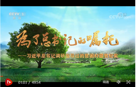 央視網(wǎng)消息:25日起,三集政論專題片《為了總書記的囑托——習(xí)近平總書記調(diào)研指導(dǎo)過的貧困村脫貧紀(jì)實(shí)》連續(xù)三天在中央廣播電視總臺央視綜合頻道20:00黃金檔播出。