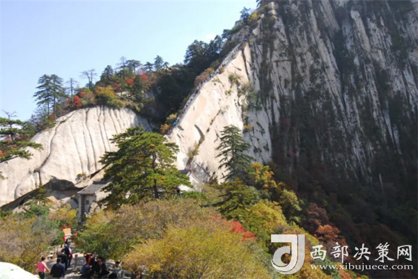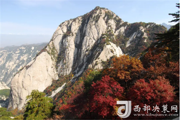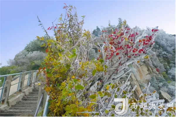 在深秋,翻飛的落葉伴著初雪裝扮著整個華山