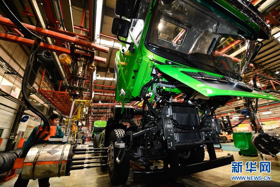 工人在位于濟南市章丘區(qū)的中國重汽集團濟南商用車有限公司整車裝配生產(chǎn)線上作業(yè)(2018年1月25日攝)。新華社記者 郭緒雷 攝