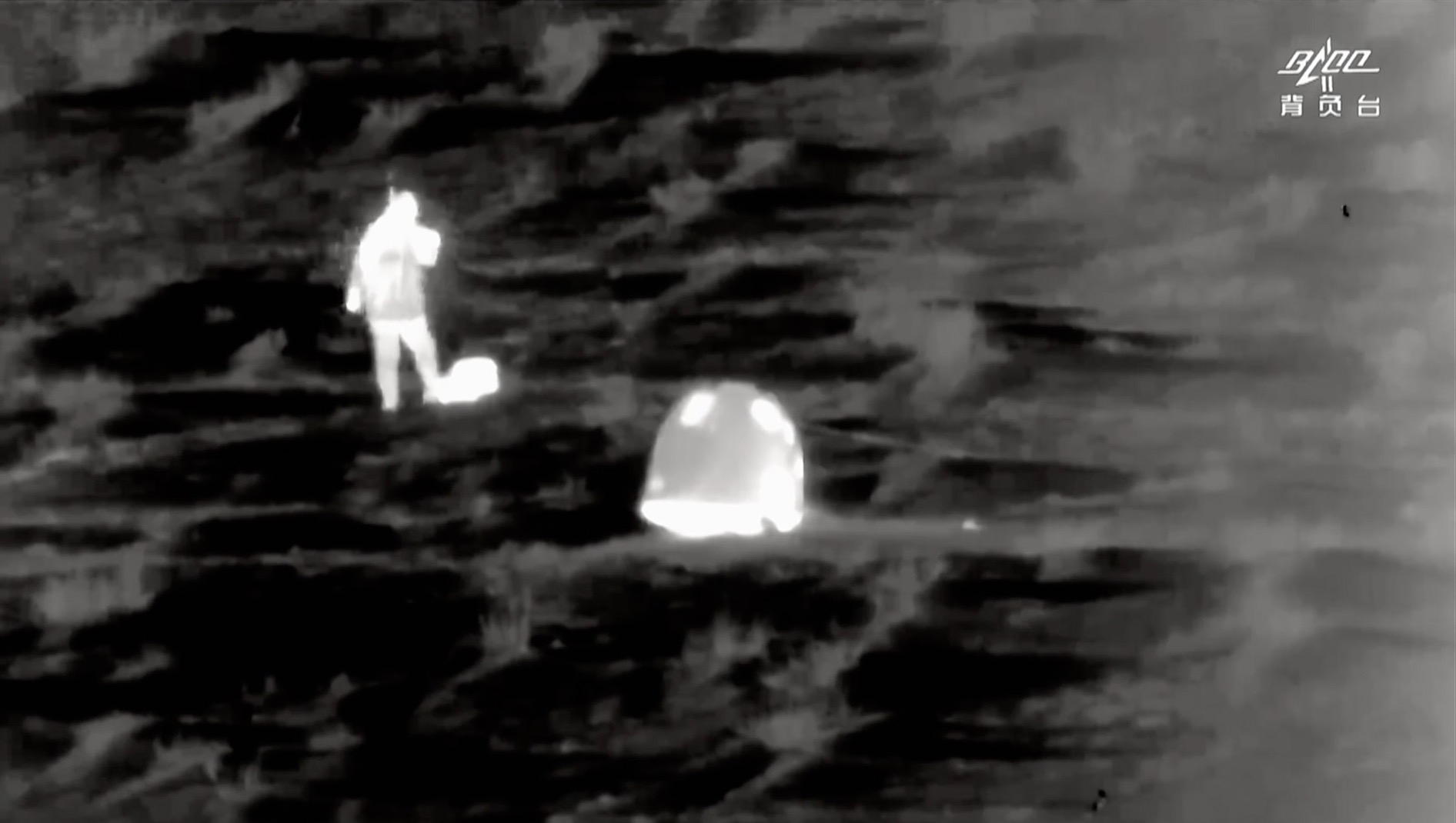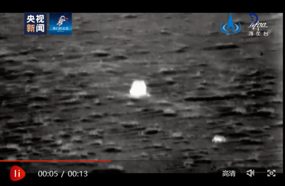 △紅外影像顯示一只小動(dòng)物從嫦娥五號(hào)返回器前跑過(guò)