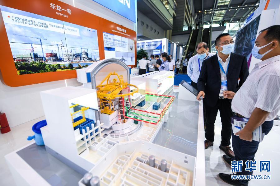 11月11日,在深圳舉行的第二十二屆中國國際高新技術(shù)成果交易會(高交會)上,參觀者在中廣核展臺了解“華龍一號”核電技術(shù)。新華社記者 毛思倩 攝