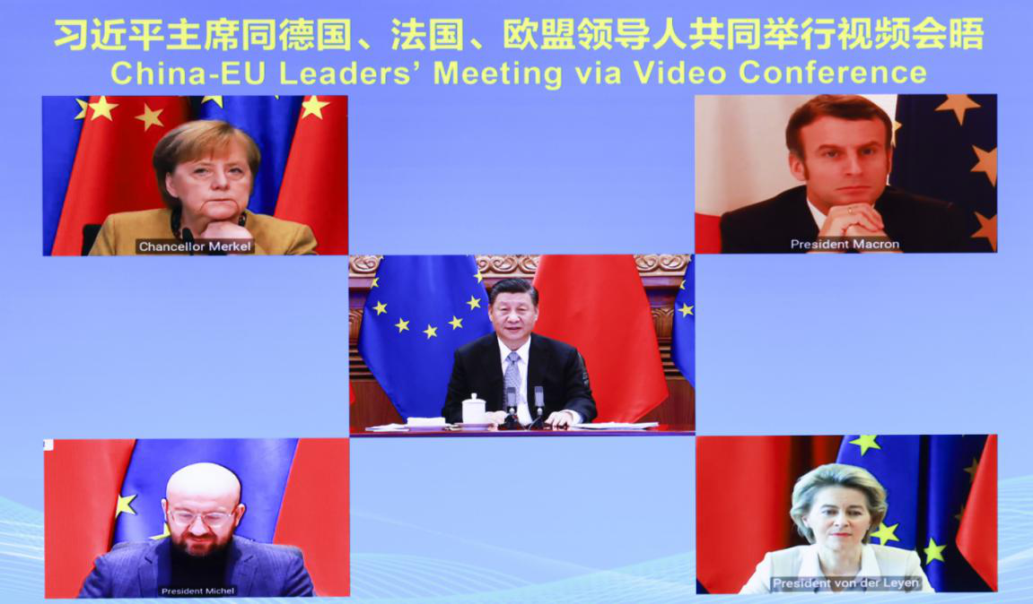 2020年12月30日晚,國家主席習(xí)近平同德國、法國、歐盟領(lǐng)導(dǎo)人共同舉行視頻會晤。