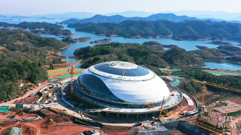 △1月10日,浙江杭州,2022年亞運會淳安場地自行車館正加緊建設(shè)中,爭取今年3月底前完成竣工驗收。