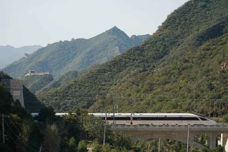 ↑2019年12月30日,北京冬奧會重要配套基礎(chǔ)設(shè)施工程——北京至張家口高速鐵路開通運營。京張高鐵是由我國自主設(shè)計建造的時速350公里智能高速鐵路。開通后,北京至張家口太子城的冬奧會主賽場可在1小時內(nèi)通達,同時為推動北京非首都功能疏解、京津冀協(xié)同發(fā)展注入新動力。這是一列復(fù)興號高鐵列車從京張高鐵駛過居庸關(guān)長城(2020年10月6日攝)。新華社記者 鞠煥宗 攝