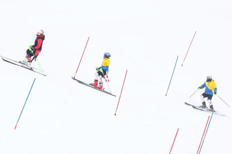 ↑為備戰(zhàn)2022年北京冬奧會,選拔優(yōu)秀隊員,中國國家高山滑雪集訓(xùn)隊自2018年底起陸續(xù)在歐洲阿爾卑斯山區(qū)多個雪地訓(xùn)練基地內(nèi)開展訓(xùn)練和比賽。這是在奧地利蒂羅爾州一處雪場內(nèi),集訓(xùn)隊隊員們在進行熱身訓(xùn)練(2019年4月5日攝)。新華社記者 郭晨 攝