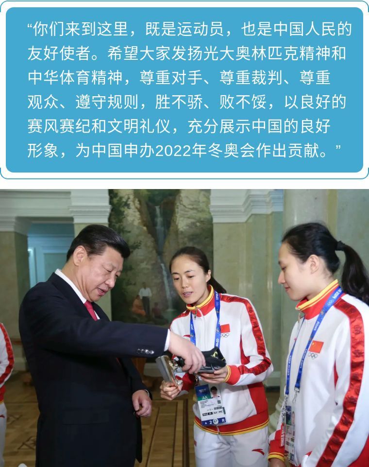 ↑2014年2月7日,中共中央總書記、國家主席、中央軍委主席習(xí)近平在俄羅斯索契親切看望參加第二十二屆冬季奧林匹克運動會的中國體育代表團。這是運動員向習(xí)近平介紹冰雪運動器材。新華社記者 蘭紅光 攝