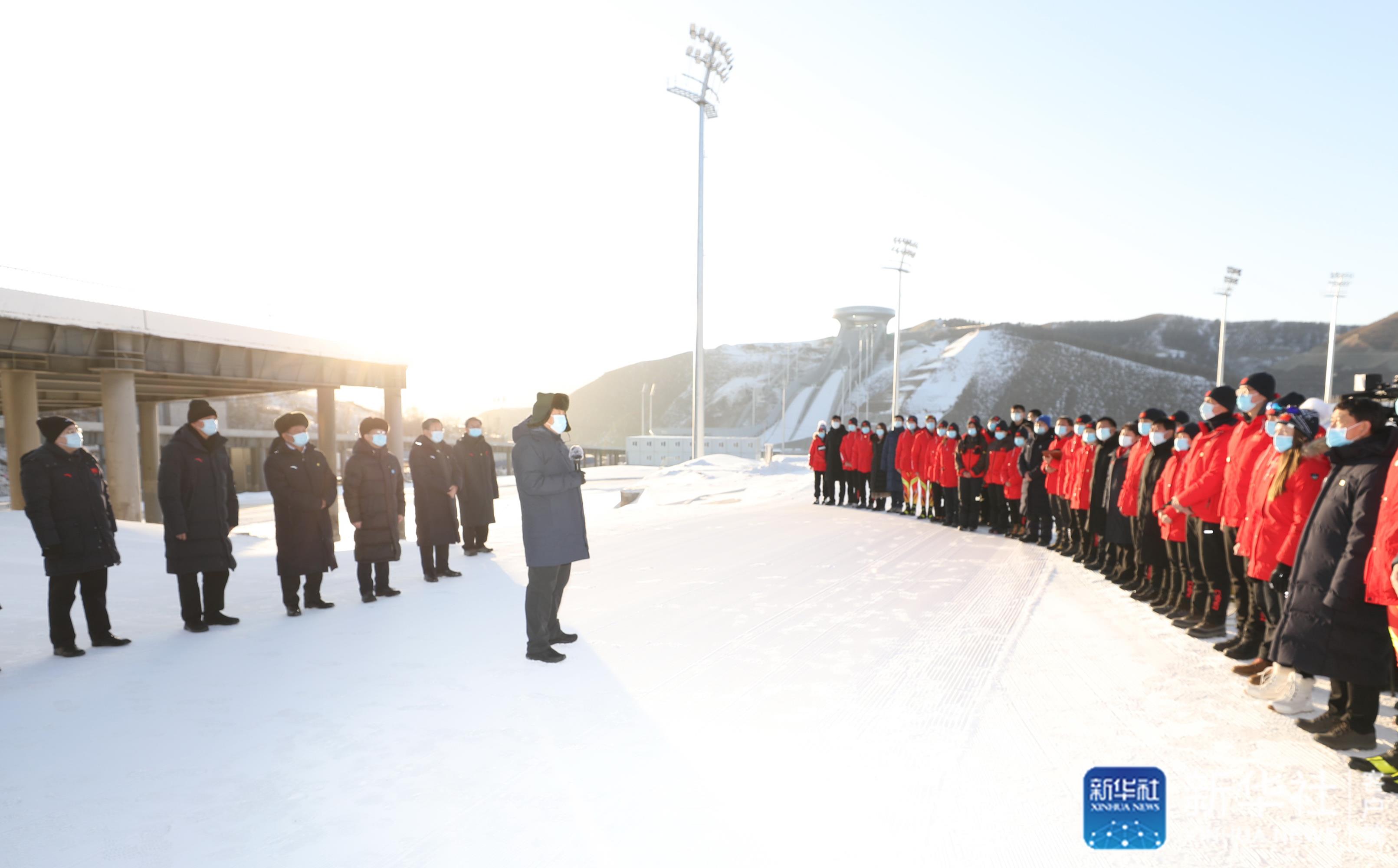在國(guó)家冬季兩項(xiàng)中心看臺(tái),習(xí)近平觀看了冬季兩項(xiàng)越野滑雪和射擊運(yùn)動(dòng)員接力訓(xùn)練情況,并看望慰問(wèn)國(guó)家冬季兩項(xiàng)、跳臺(tái)滑雪隊(duì)運(yùn)動(dòng)員、教練員和張家口賽區(qū)運(yùn)行保障團(tuán)隊(duì)、建設(shè)者代表。習(xí)近平親切地對(duì)大家說(shuō),我這次來(lái)考察北京冬奧會(huì)、冬殘奧會(huì)籌辦情況,也是在牛年春節(jié)前來(lái)看望大家。大家都在為辦好一屆成功的冬奧盛會(huì)而努力,運(yùn)動(dòng)員在刻苦訓(xùn)練,建設(shè)單位和建設(shè)者、保障團(tuán)隊(duì)兢兢業(yè)業(yè),成功打造了一批世界一流的精品工程,大家的奮斗精神、奉獻(xiàn)精神令人感奮。習(xí)近平強(qiáng)調(diào),北京冬奧會(huì)、冬殘奧會(huì)所有場(chǎng)館建設(shè)提前一年完成,我國(guó)很多冰雪項(xiàng)目在兩年多時(shí)間里實(shí)現(xiàn)從無(wú)到有,有的項(xiàng)目達(dá)到了世界先進(jìn)水平,充分體現(xiàn)了黨的領(lǐng)導(dǎo)和舉國(guó)體制、集中力量辦大事的制度優(yōu)勢(shì)。