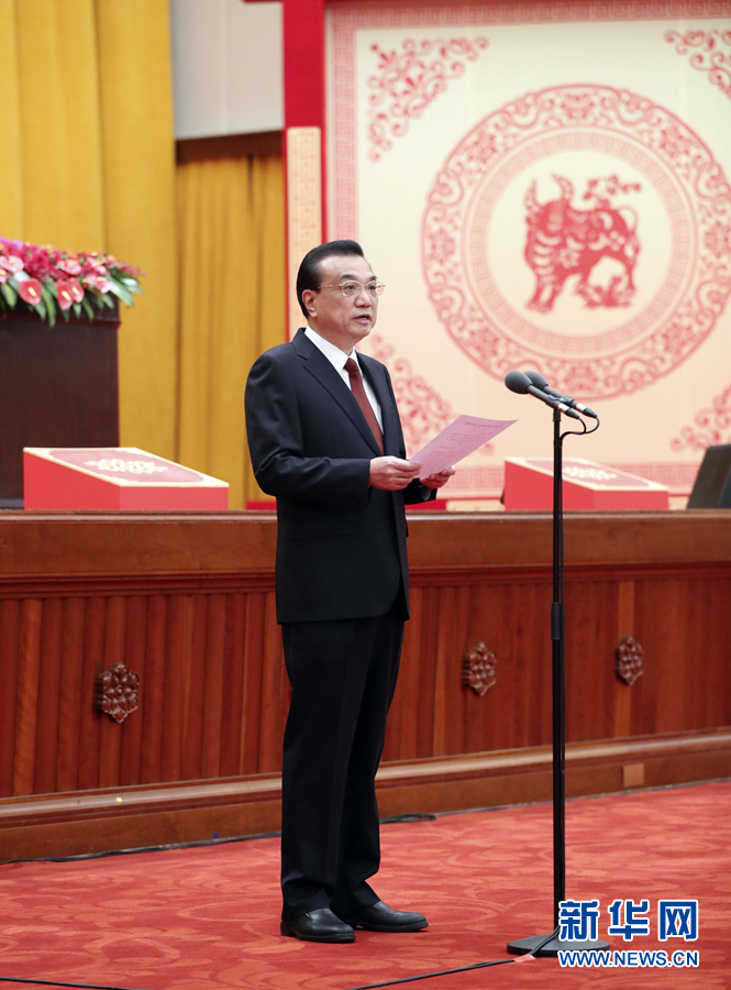 黨和國(guó)家領(lǐng)導(dǎo)人李克強(qiáng)、栗戰(zhàn)書、汪洋、王滬寧、趙樂際、韓正、王岐山等出席團(tuán)拜會(huì),李克強(qiáng)主持。