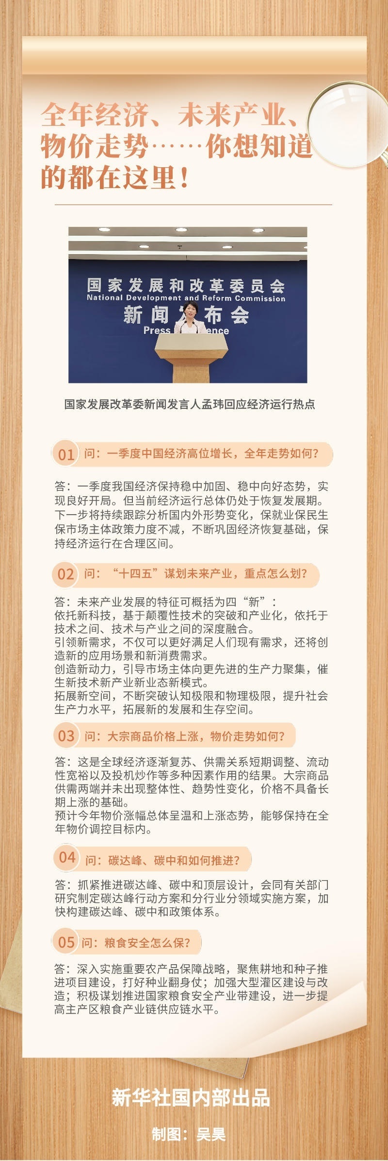 一季度中國經(jīng)濟(jì)高位增長,全年走勢如何?“十四五”謀劃未來產(chǎn)業(yè),重點(diǎn)怎么劃?大宗商品價(jià)格上漲,物價(jià)可控嗎?國家發(fā)展改革委新聞發(fā)言人孟瑋在19日舉行的新聞發(fā)布會上就熱點(diǎn)問題作出回應(yīng)。
