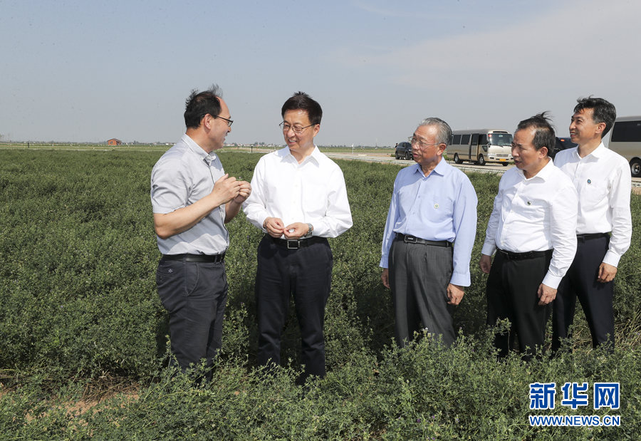 7月5日至6日,中共中央政治局常委、國務(wù)院副總理韓正先后在山東東營、濟南調(diào)研。這是7月5日,韓正在黃河三角洲現(xiàn)代農(nóng)業(yè)技術(shù)創(chuàng)新中心考察鹽堿地生態(tài)保護和綜合利用情況。新華社記者 姚大偉 攝