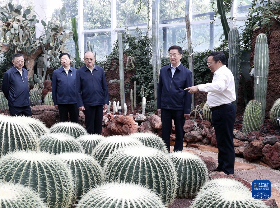 10月11日至12日,中共中央政治局常委、國(guó)務(wù)院副總理韓正在云南調(diào)研。這是10月12日,韓正在中國(guó)科學(xué)院昆明植物研究所大溫室聽(tīng)取生物多樣性研究與保護(hù)等工作情況匯報(bào)。新華社記者 劉衛(wèi)兵 攝