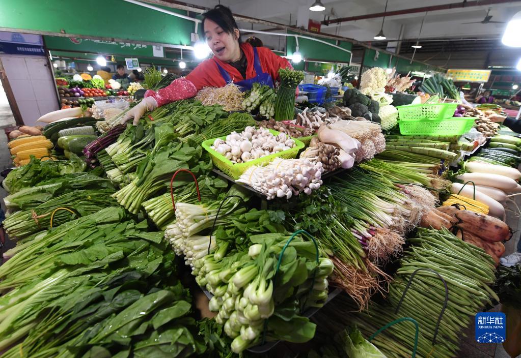 11月10日,在廣西南寧市濱湖路一家農(nóng)貿(mào)市場,人們在選購蔬菜。新華社記者 陸波岸 攝