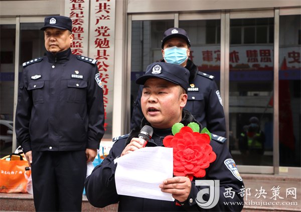 西部決策網(wǎng)訊在當(dāng)前疫情防控的關(guān)鍵時(shí)期,勉縣公安局全體民輔警積極響應(yīng)縣局黨委號(hào)召,準(zhǔn)備隨時(shí)奔赴抗疫一線,堅(jiān)決確保人民生命健康安全和社會(huì)大局安全穩(wěn)定,1月3日上午,勉縣公安局抽調(diào)30名民輔警組成疫情防控應(yīng)急先鋒隊(duì)舉行宣誓儀式。副縣長(zhǎng)、局黨委書記、局長(zhǎng)陳玉存出席并講話,局黨委委員、副局長(zhǎng)余洪波主持宣誓儀式。局黨委委員、駐局紀(jì)檢組組長(zhǎng)張建鴻;局黨委委員、副局長(zhǎng)蔣軍;局黨委委員、政工室主任李建軍參加儀式。
